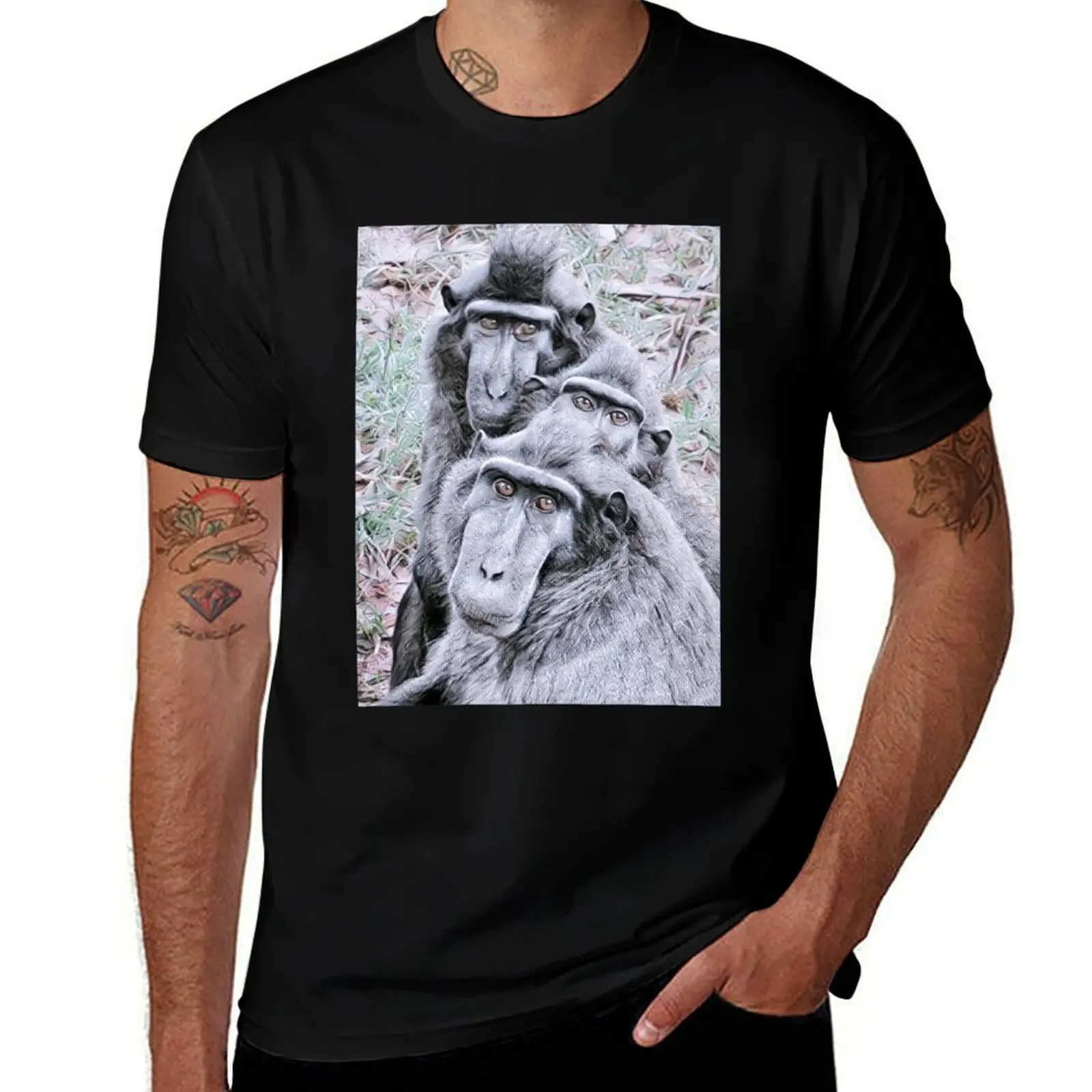 Chemise t-shirts T-Shirt coton Macaque homme chemise noire t homme Sulawesi pack crête t graphique coton