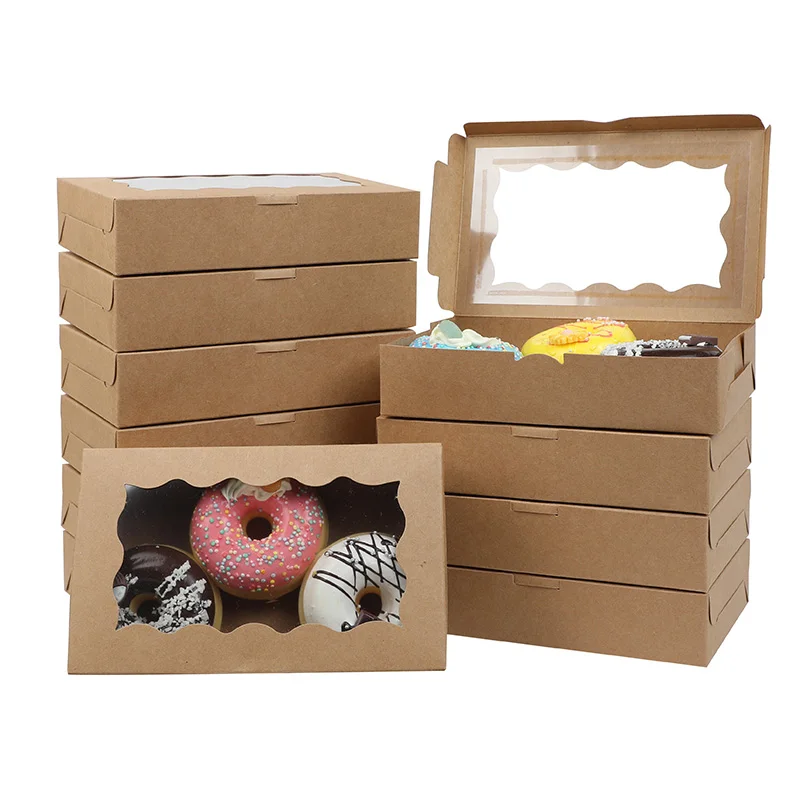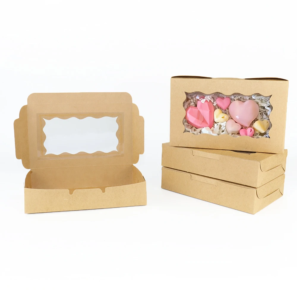 Boîtes cadeaux en papier Kraft avec fenêtre, décorations de mariage, boîte d'emballage pour gâteaux et bonbons, fournitures pour fête d'anniversaire de bébé, 5/10/20 pièces
