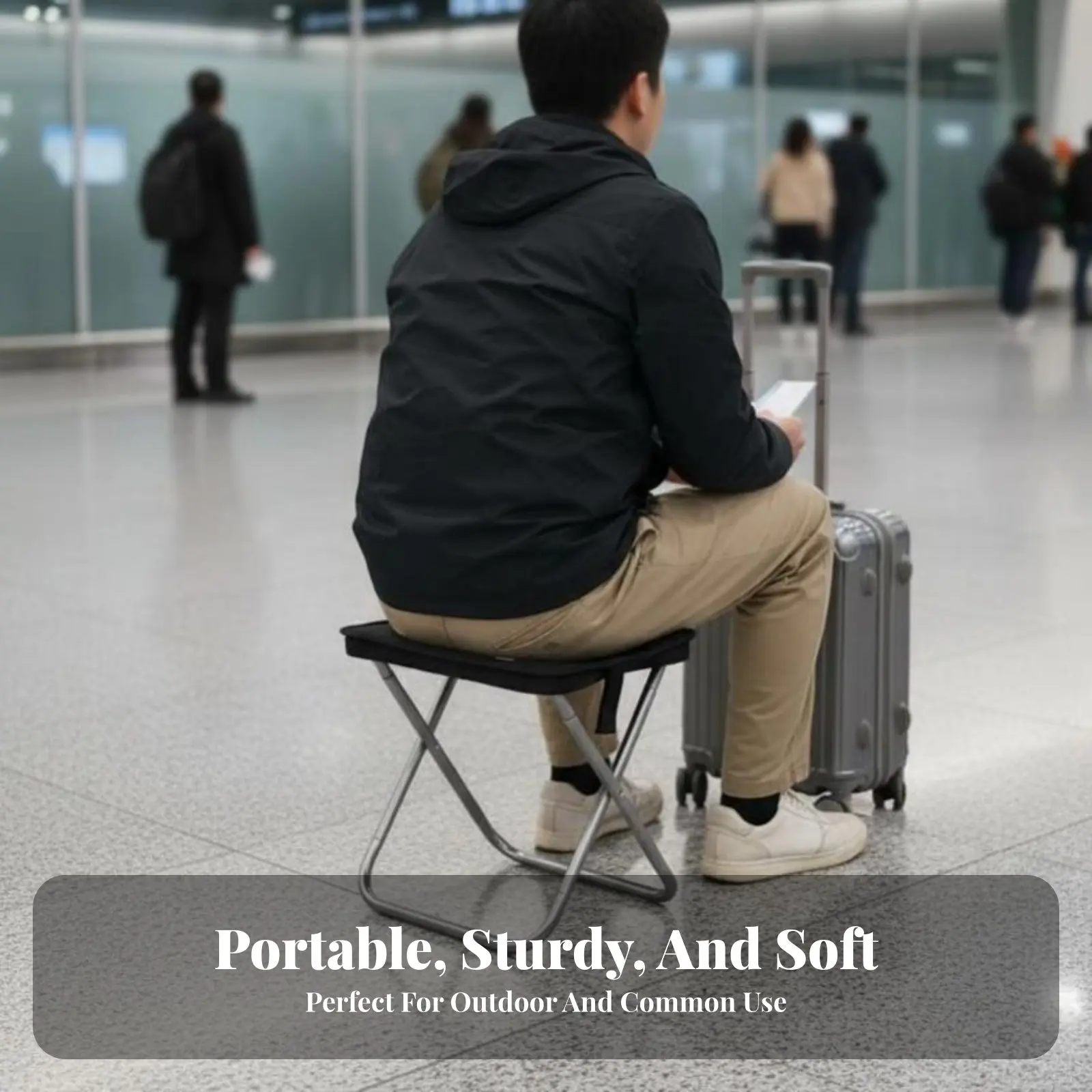 Tabouret pliant portable, capacité 100 kg, mini tabouret pliable pour la file d'attente au métro, pique-nique, camping, pêche