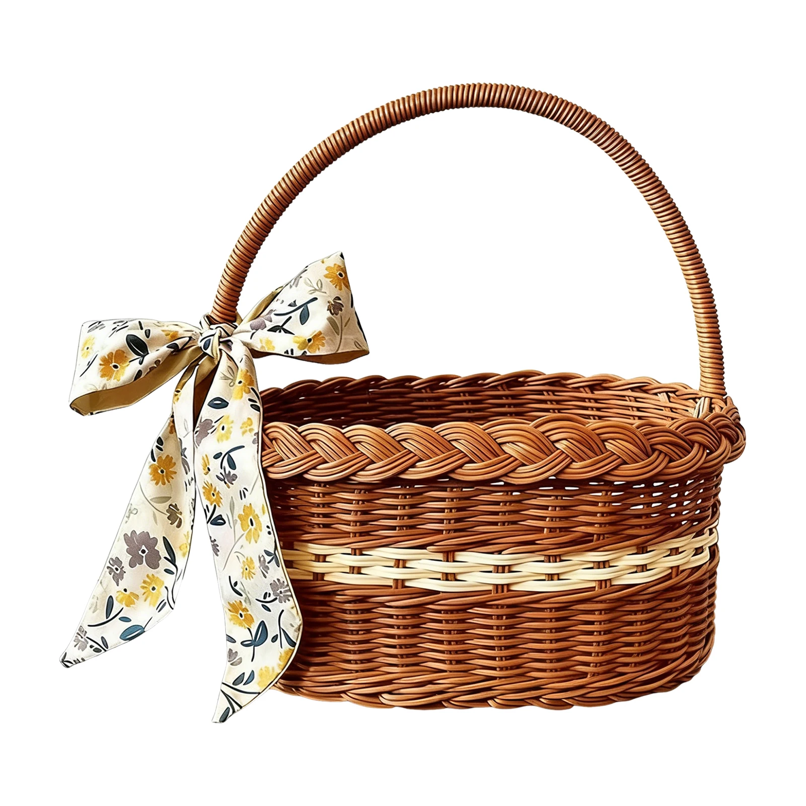 Panier de pique-nique tressé imitation rotin avec poignée et ruban, panier rétro tissé pour pique-nique, camping et plein air