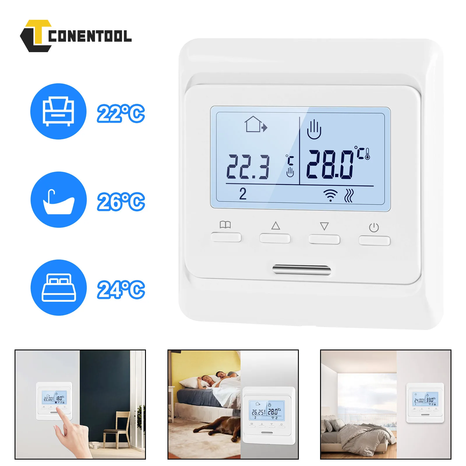 CONENTOOL Tuya Thermostat de maison intelligente avec WiFi/NO WiFi Thermostat de sol chaud pour chauffage électrique contrôleur Programmable Google