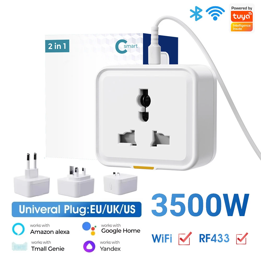 Prise intelligente sans fil Tuya Smart Home WIFI, compatible EU US UK, 16A, prise universelle de voyage, convertisseur de prise universelle, moniteur de puissance, minuterie
