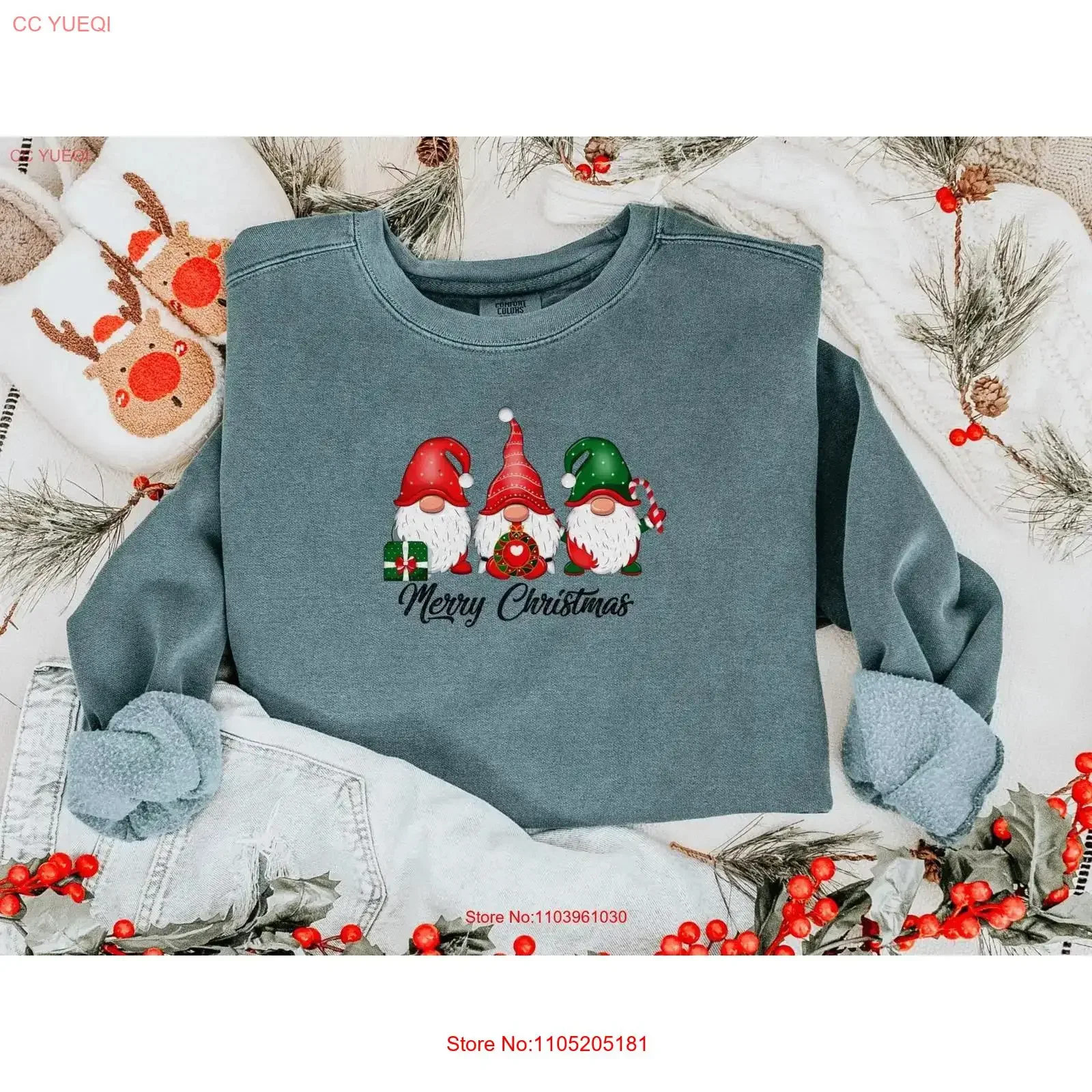 Noël Gnome t-shirt Gnomies suspendus avec le pull joyeux et lumineux mignon vintage lavé mode légèrement graphique