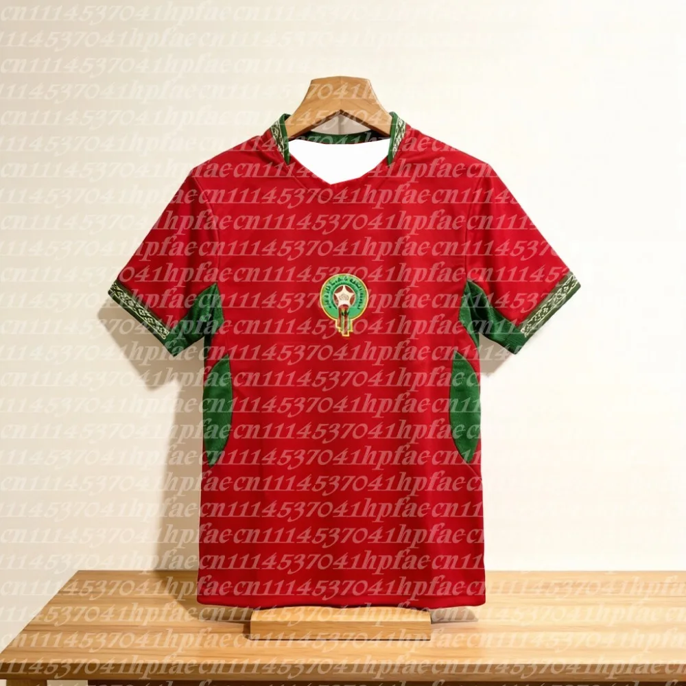 Maillot de football domicile de l'équipe nationale du Maroc 2026 – Motif traditionnel, manches courtes, pour supporter, maillot de sport, haut assorti pour homme et famille
