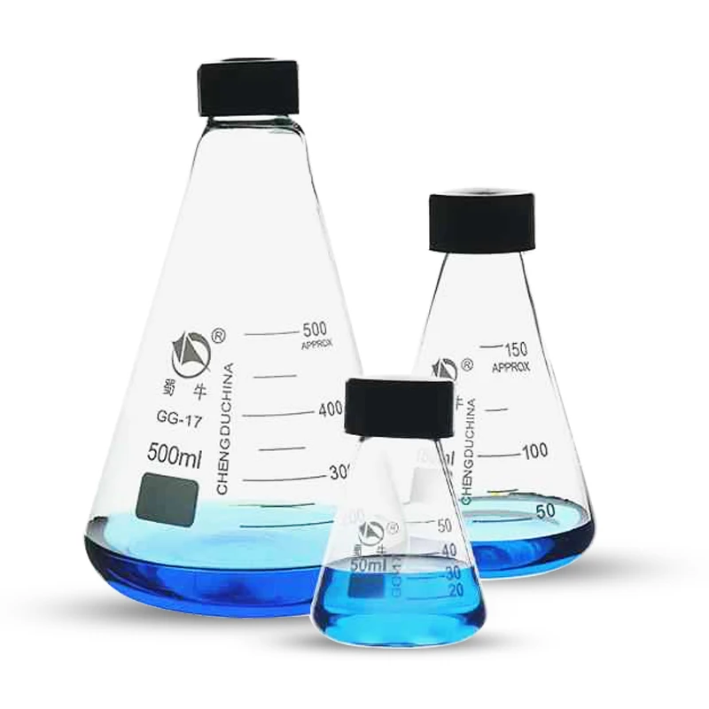 Flacon Erlenmeyer conique en verre Pyrex, 50ml, 100ml, 250ml, 500ml, 1000ml, bouteille rechargeable avec bouchon à vis