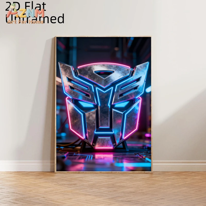 AZNM Transformers Autobot Logo Néon Sans Cadre Toile Murale Cyberpunk Sci-Fi Symbole Robot Impression pour Salle de Jeu Home Cinéma Décoration