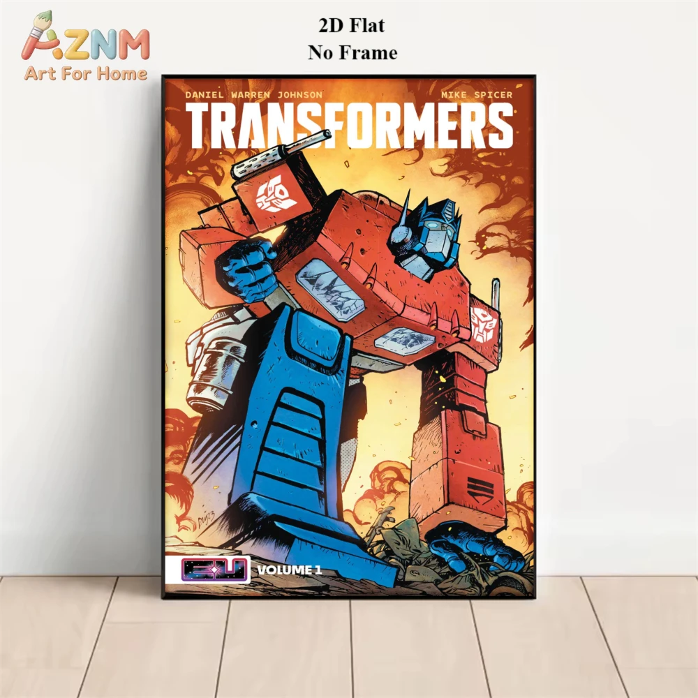 AZNM Transformers Optimus Prime Comic Cover Frameless Canvas Wall Art Vintage Robot Hero Print for Kids Bedroom Game Room Decor