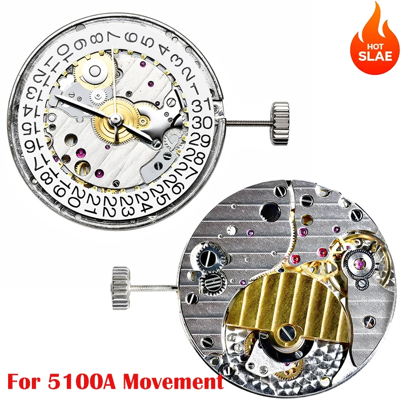 Mouvement de montre squelette 35 Jewels 5100A, super fin, micro-rotor, automatique, mécanique, trois aiguilles, date simple, accessoire de montre