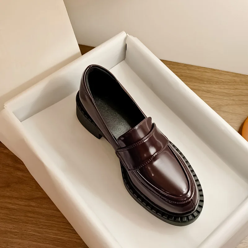 Mocassins classiques à semelle Lug pour femmes | Slip-ons à bout rond en cuir pleine fleur avec gros bande de roulement en caoutchouc et support de voûte plantaire