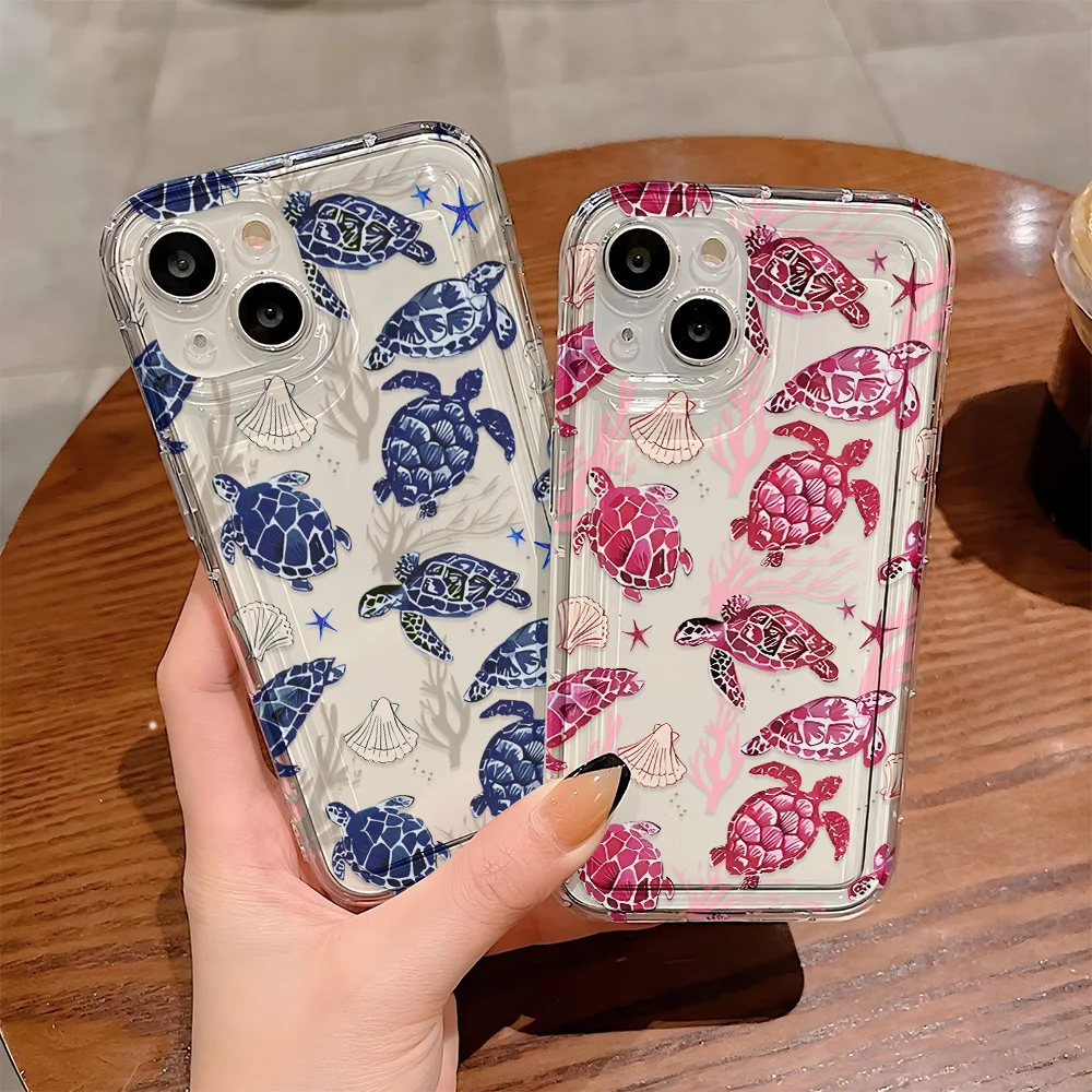Depiction d'animaux marins iPhone 17 Air 16 15 14 11 12 13 Pro Max 16 15 Plus 13 12 Mini coque souple tortue téléphone coque transparente