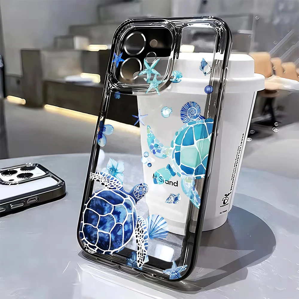 Coque de téléphone avec peinture de tortue créative, étui arrière transparent Anti-chute pour IPhone 16 15 14 13 12 11 Pro Max 7 8 Plus X XR XSMax