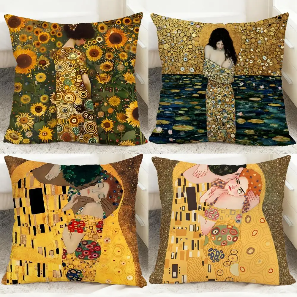 GG-GGustav Klimt OOil Paintings Housse de coussin confortable et réversible, idéale pour la voiture, le canapé, la chambre à coucher et le plus allá