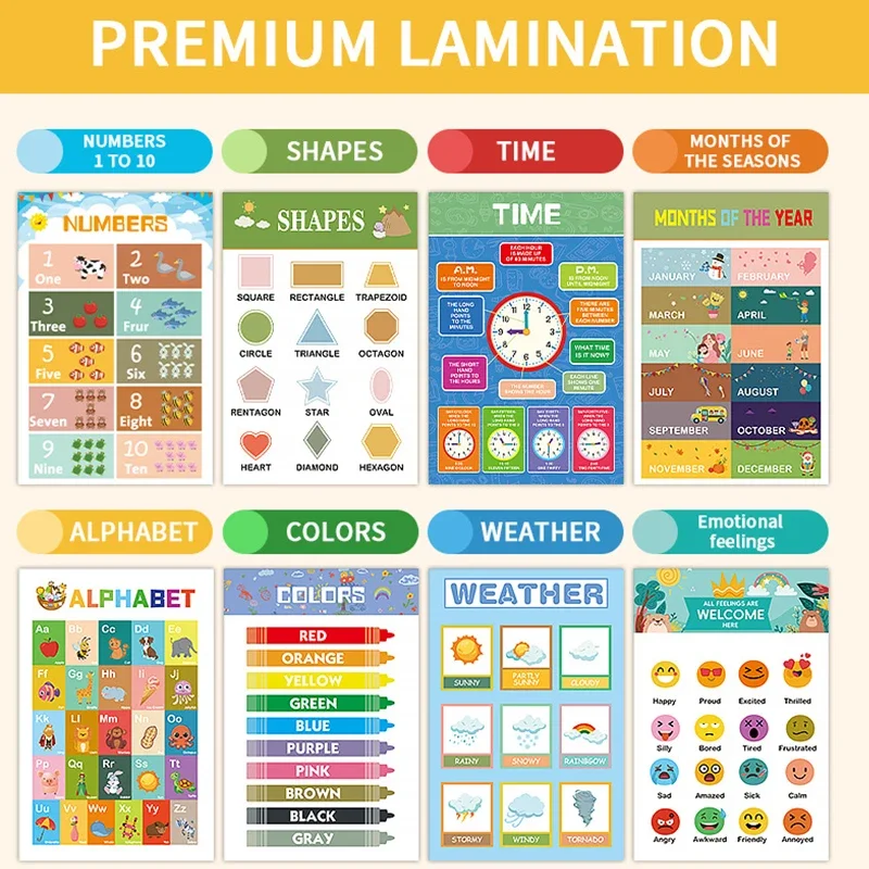 12pcs Nevelési poszterek számára toddlers Óvoda Osztályterem fali dekor & Tudomány fali Mesterkedés Ábécé numbersfor gyerekeknek 1-5 Esztendő Agg