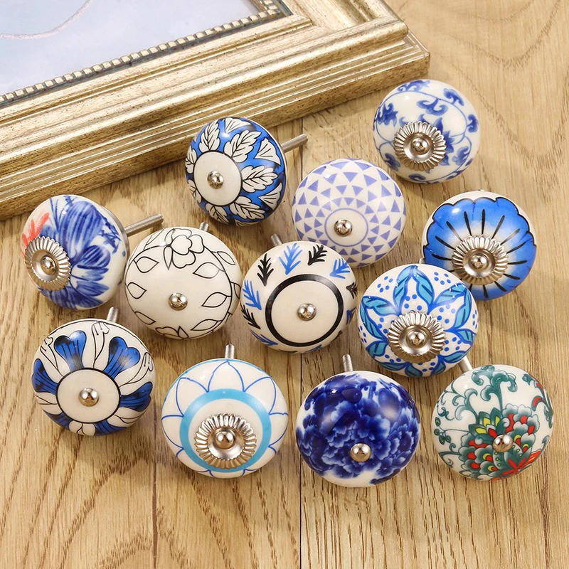 1PCS Agyagművesség multicolor Agyagművesség knobs számára Fali szekrény szekrény Fiókos szekrény majd Belső berendezés Antik Virág- Aláíró jegyző kezelni Belerúg a labdába Ajtó Gomb