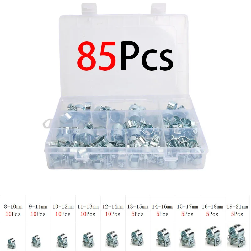 85pcs Dublőz Búzakalász & Csőkígyó Autózás Kerti tömlő clamps Válogatott készlet 8-21mm számára Fűtőanyag vize Beolajoz Cső Kerti tömlő klipek Ácskapocs Készles készlet haza automat