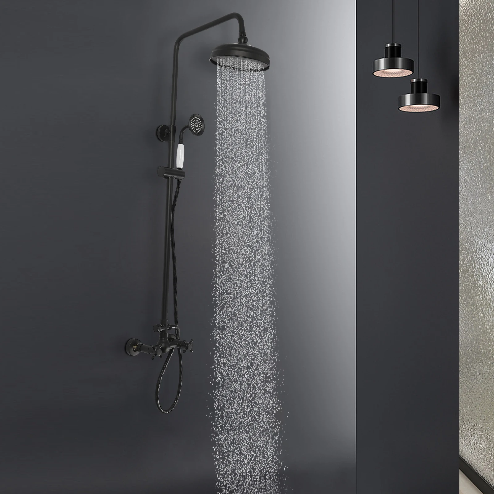 Zuhany Ablaktábla áram Rendszer (5 modes) vel Lecsepeg vize zuhany fejét & ledes, (1345mm) brashed Rozsdaálló Acél zuhany Colón, wall-set Esik az eső Bezsúfol Rendszer, vel kezét zuhany & 4 Alapanyag Borzong