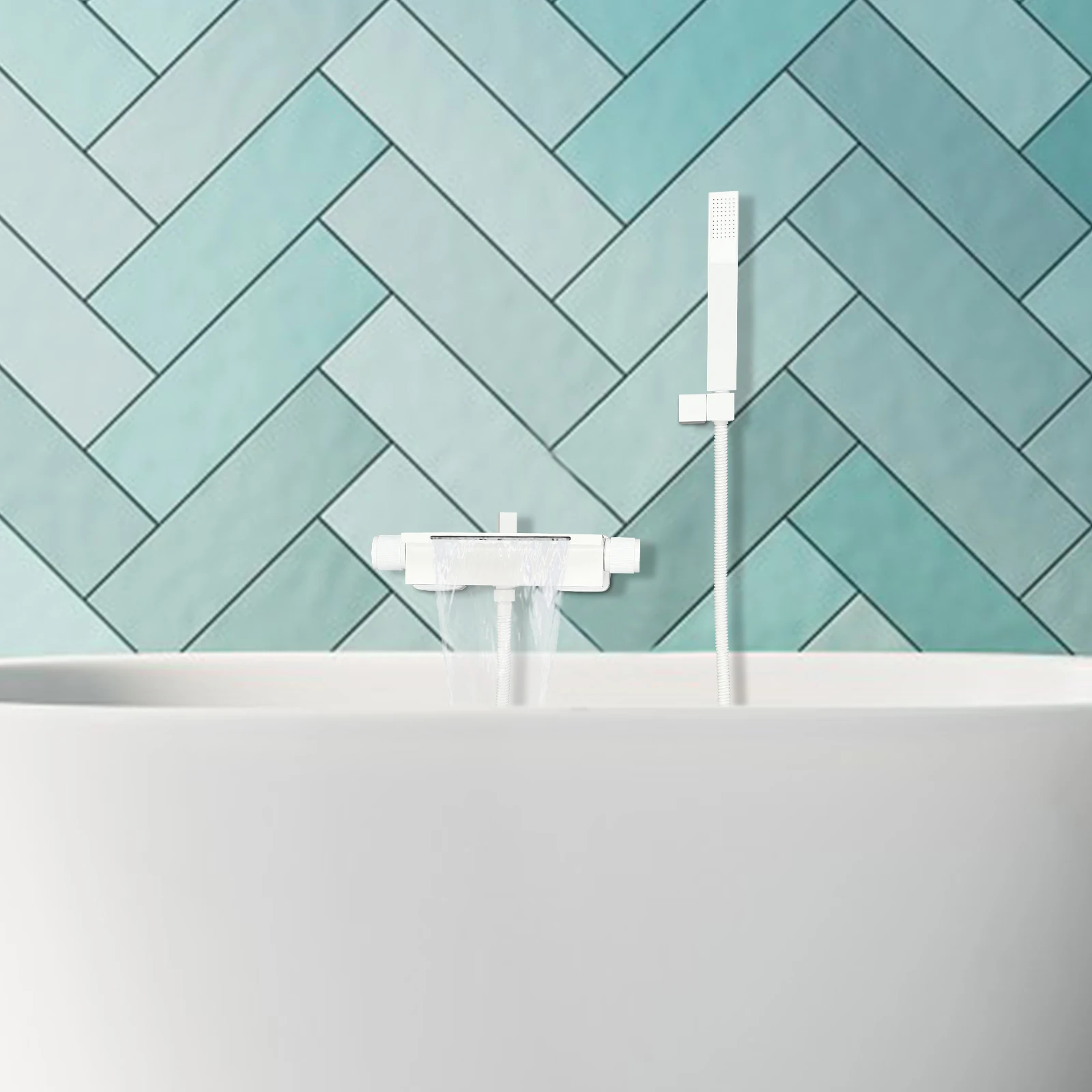 Wall-mounted Fürdőkád csaptelep (from yabai B waterfall+handheld)-white, Fürdőkád csaptelep, Fehér, Merészség