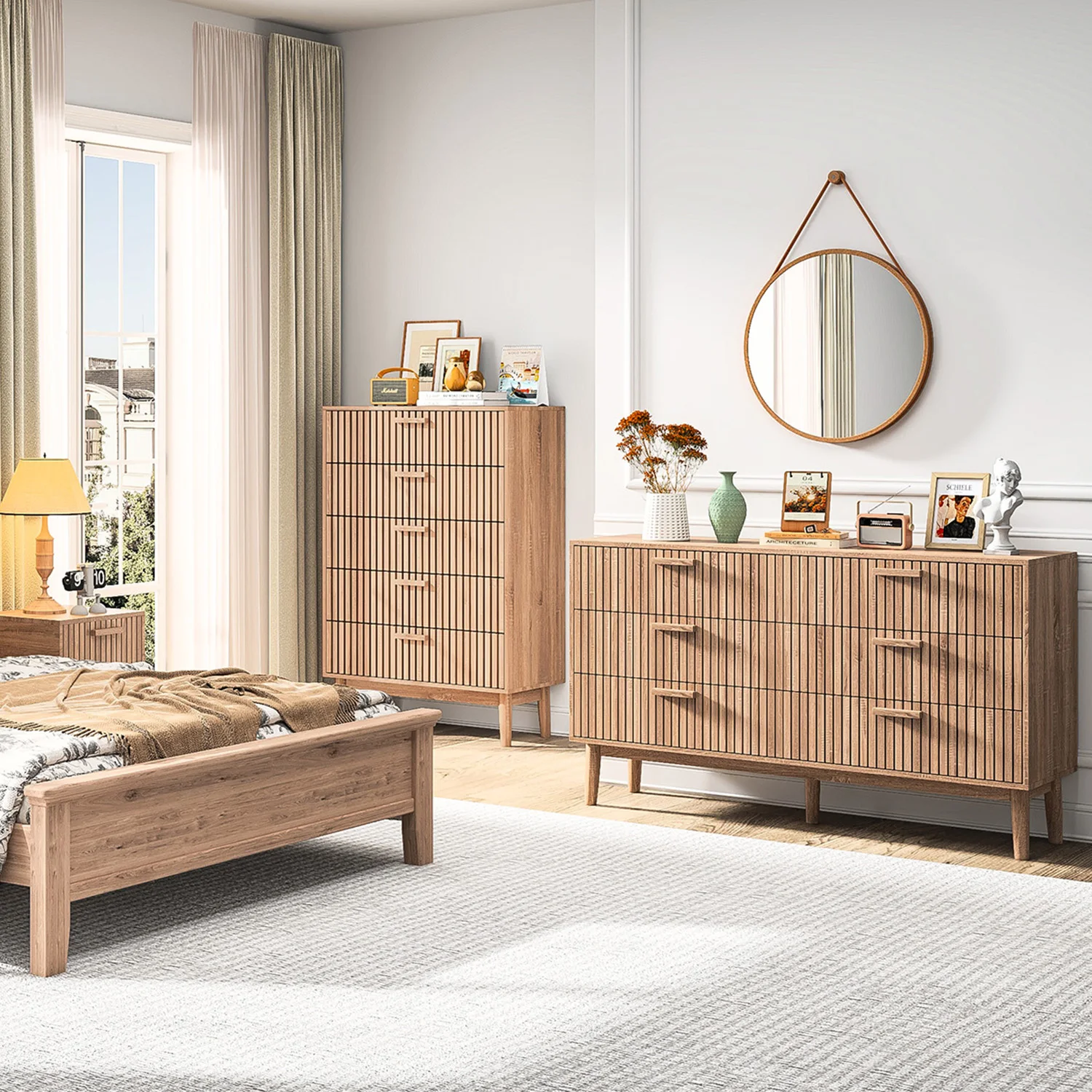 ROSAHQNDA kommode mit 6/4 schubladen, moderner kleiderschrank, breiter retro-schminktisch aus holz, Bunda wohnzimmer, schlafzimmer