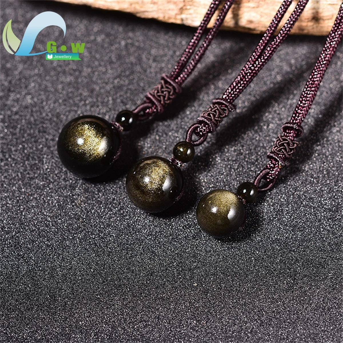 Vérbeli Arany- Obszidián Csiszolt üveg golyós Medál Nyakdísz Energia Kő Aggat ékszer Lelki Gyógyítás Adomány számára férfiak Nők Auxiliaire