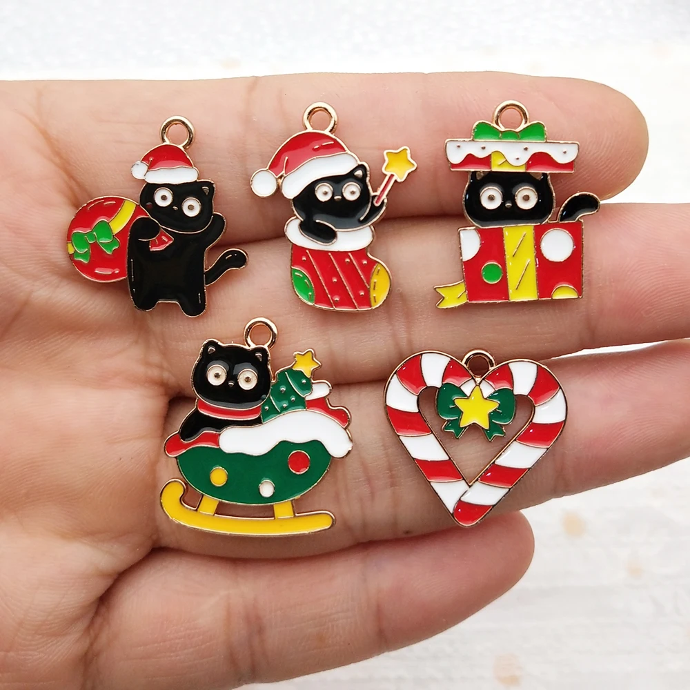 10db Cica karácsonyi Báj ékszer accessor Zománc Fülbevaló telefon keychain Medál diy Gyártás kézműves Keverés Fém Arany plated