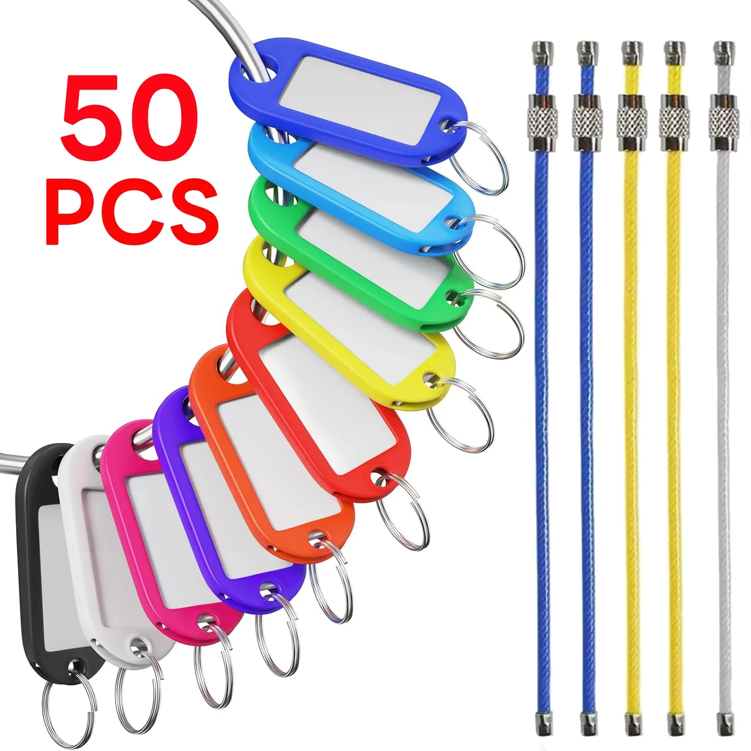 Kulcs Epilógus beállítása (50 Alakítható kulcs labels & 5 Kábel kulcs rings) - Sokoldalú számára USB drives, Poggyász, home/office kulcs