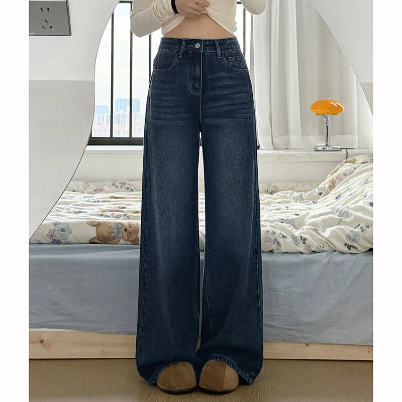 Téli Együttérző Alkalmi Buggyos egyenesen Farmernadrág Koreai Elegancia Vastagodik polár lined Bő lábát Cajgvászon nadrágot Nők Alkalmazkodó m Magas derékon vaqueros