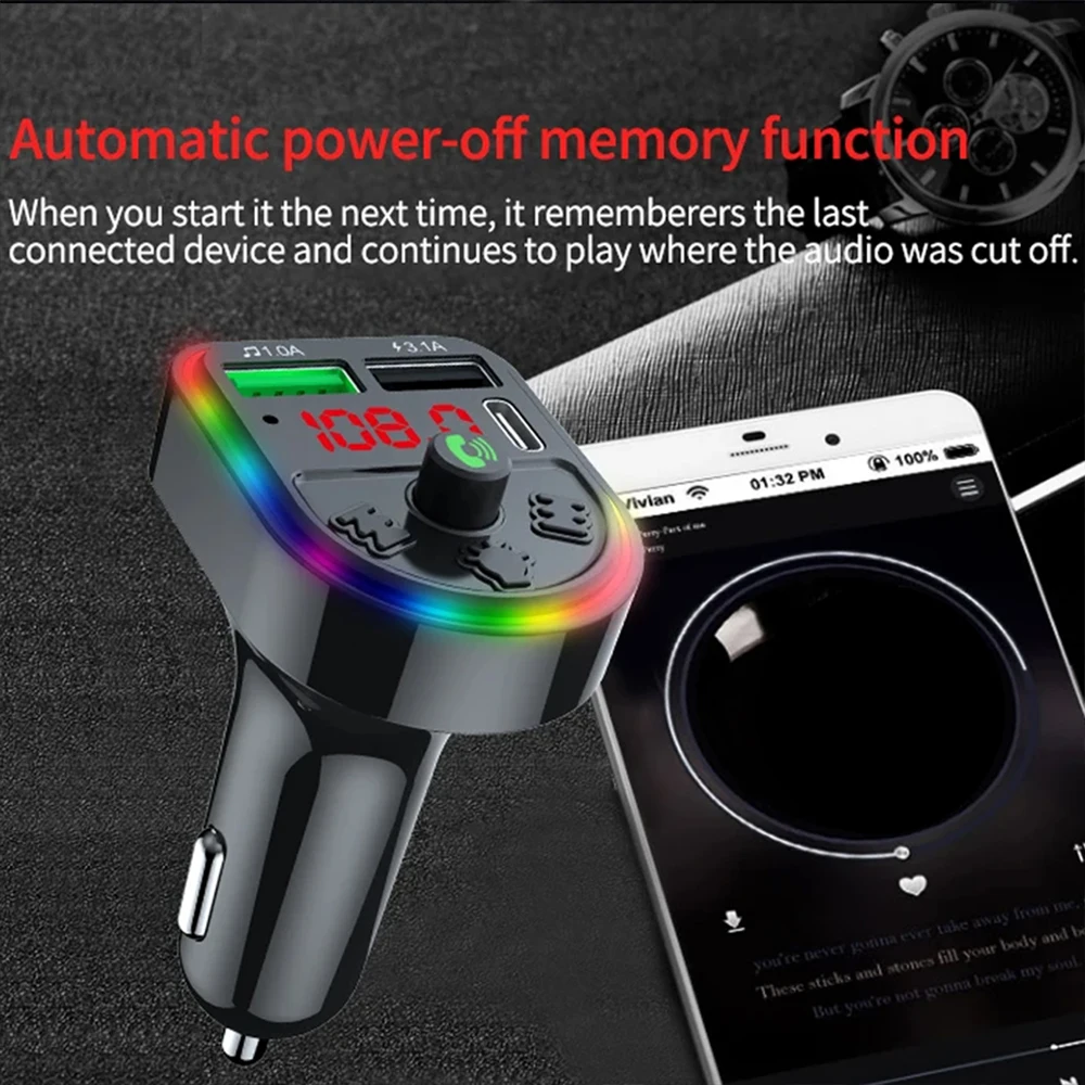 MP3 Játékos gyors töltés Kettős szám USB töltő autó Bluetooth 5.0 Fermium Adóállomás