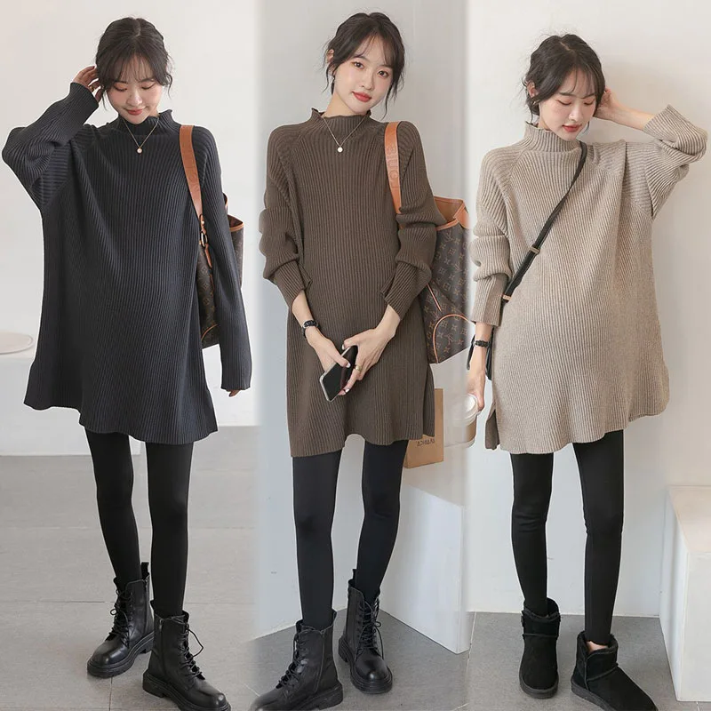 Téli kintted kismama Pulóver Messzemenő méret Ingó- Kapcsolat derékon Ing ruhák számára Állapotos Nők Horderő tops