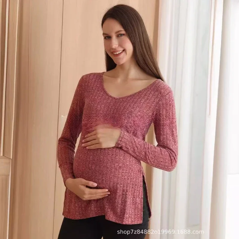 2025 autumn/winter v-neck long-sleeve Ápolás Pulóver - kismama & postpartum basenu Alvóhely Szoptatás tops pulóverek