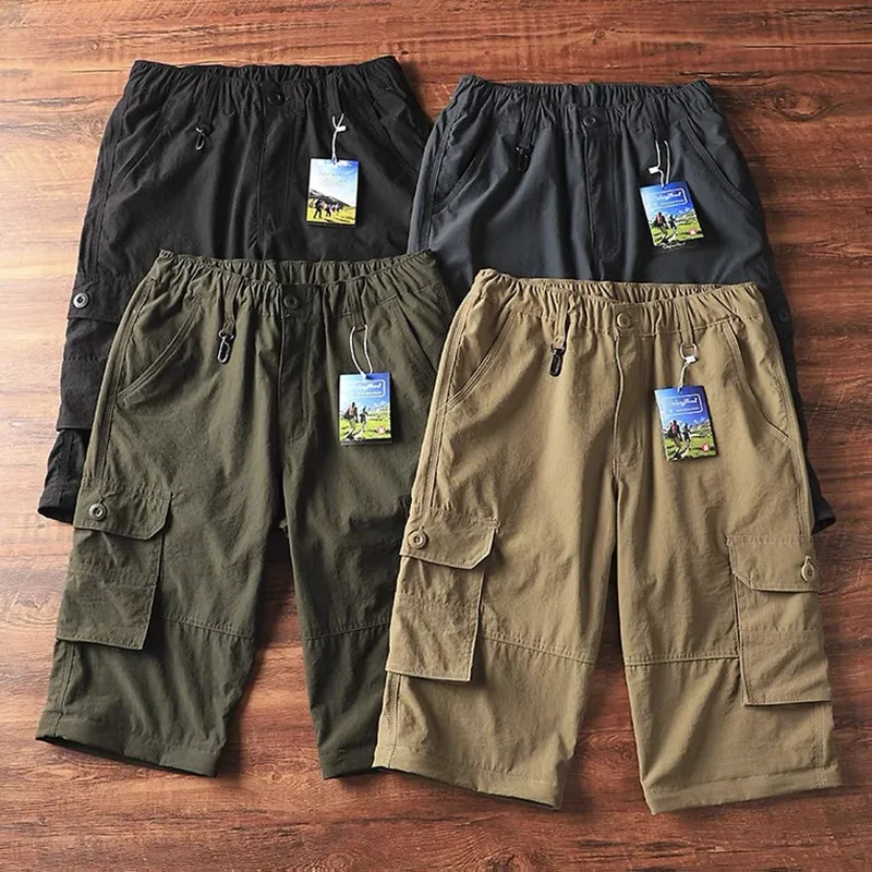 Multi Vágólap men's Halásznadrág mid derékon 95% Gyapot Lélegezhető wear-resistant sportok egyenesen lábát carga Álcázás Öt Cent nadrágot
