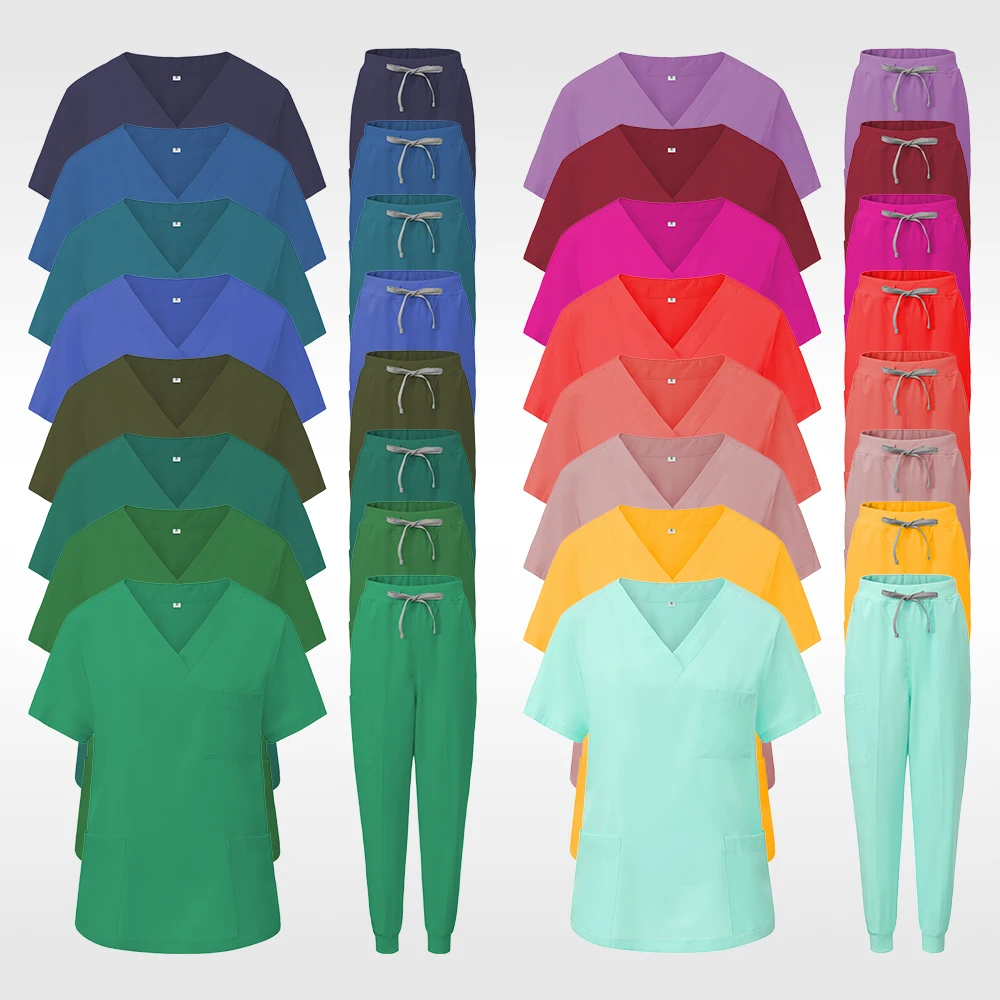 Műtősruha beállítása Uniszex Ápolás longue Behord Kórház Műtéti uniforms Szépség uniforms Asszony Ápoló Doktor uniforms Laboratórium Gyógyszerészet top+pant