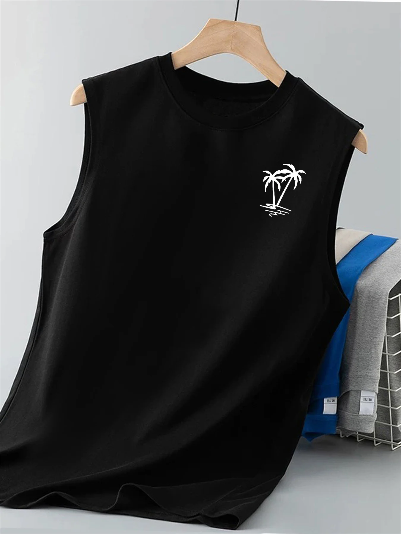 100% Akadálymentes Gyapot men's Födémgerenda Csináltatás Alkalmi Kókuszdió Élőfa nyomtatás Fitnesz Lélegezhető Ingó- Futam nyakú Ujjatlan Alsóing