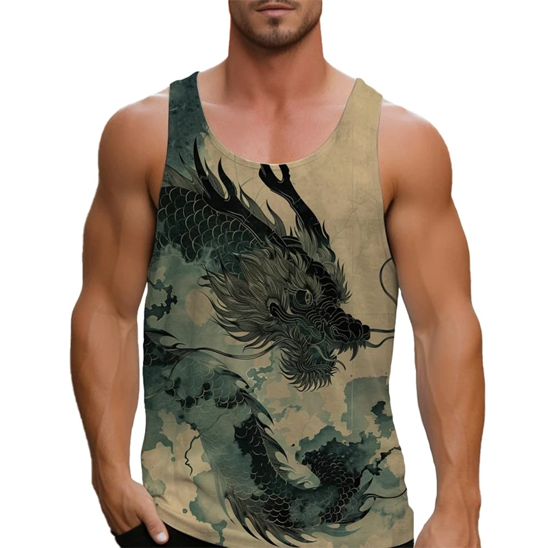 Csináltatás Dragón 3D nyomtatás Ciszterna tops men's streetwear Alsóing Irdatlan Ujjatlan Ciszterna felső bodybuilding Fitnesz edzőterem Férfi Öltözés