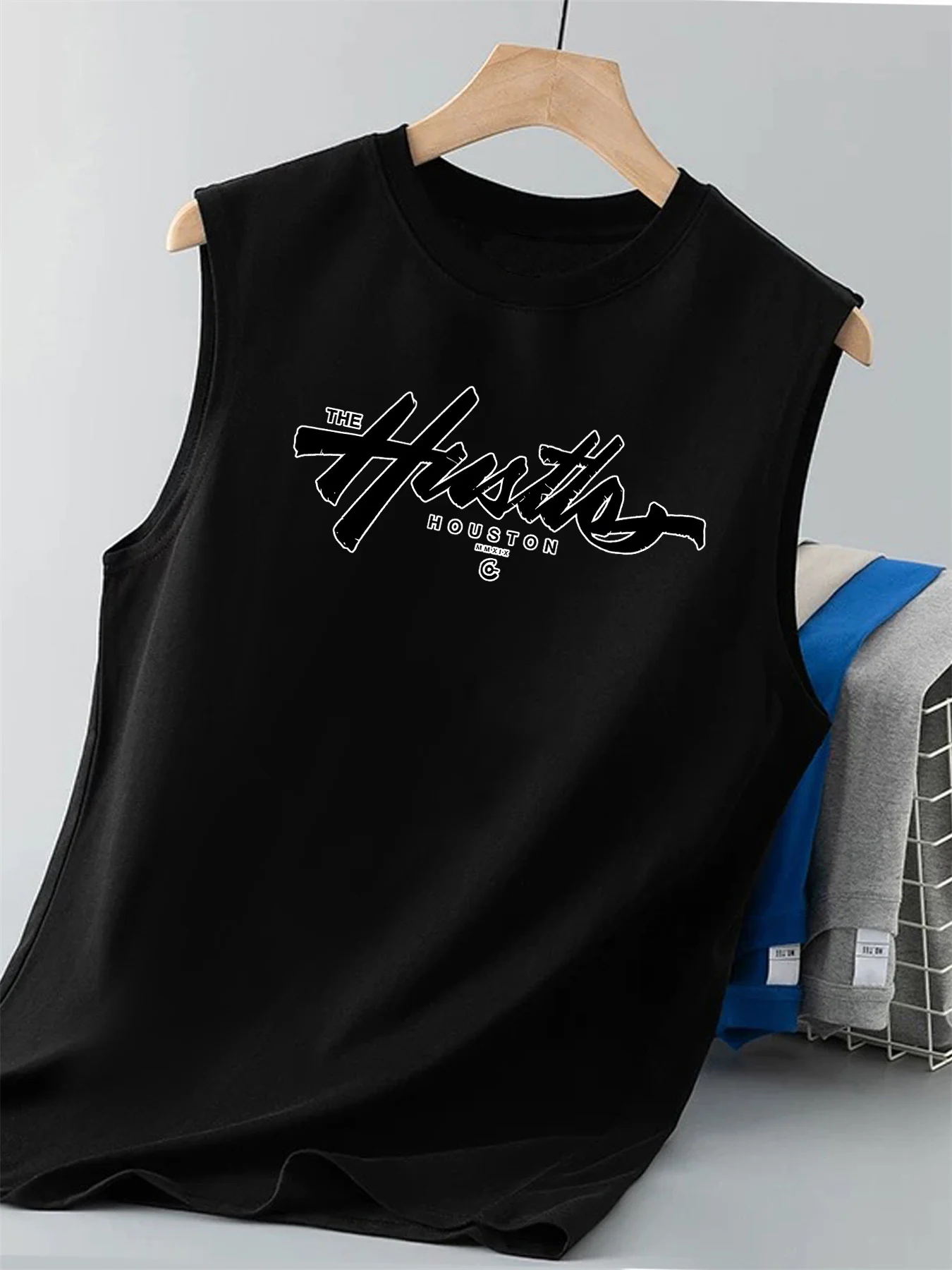100% Akadálymentes Gyapot men's Födémgerenda Csináltatás Alkalmi houston mintás Imprimé kelme Fitnesz Lélegezhető Ingó- Futam nyakú Ujjatlan Alsóing