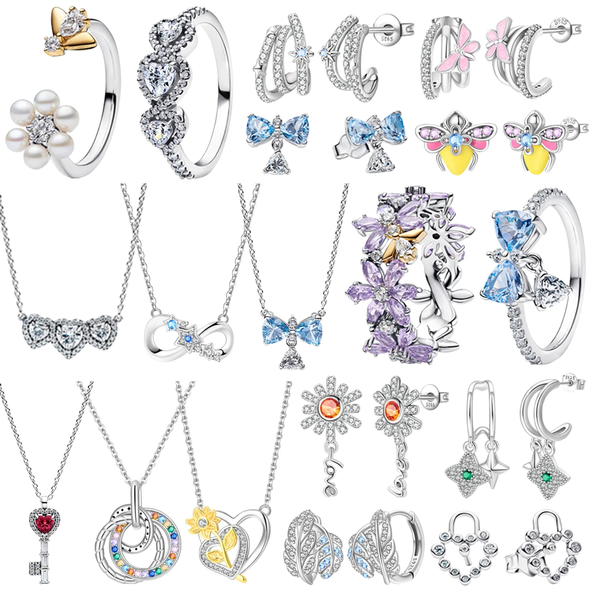 Új Bekövetkezik 925 Sterling Ezüst Báj virágos Nyakdísz Fülbevaló Karperec ékszer számára Nők beállítása esküvői Adomány Legújabb divat