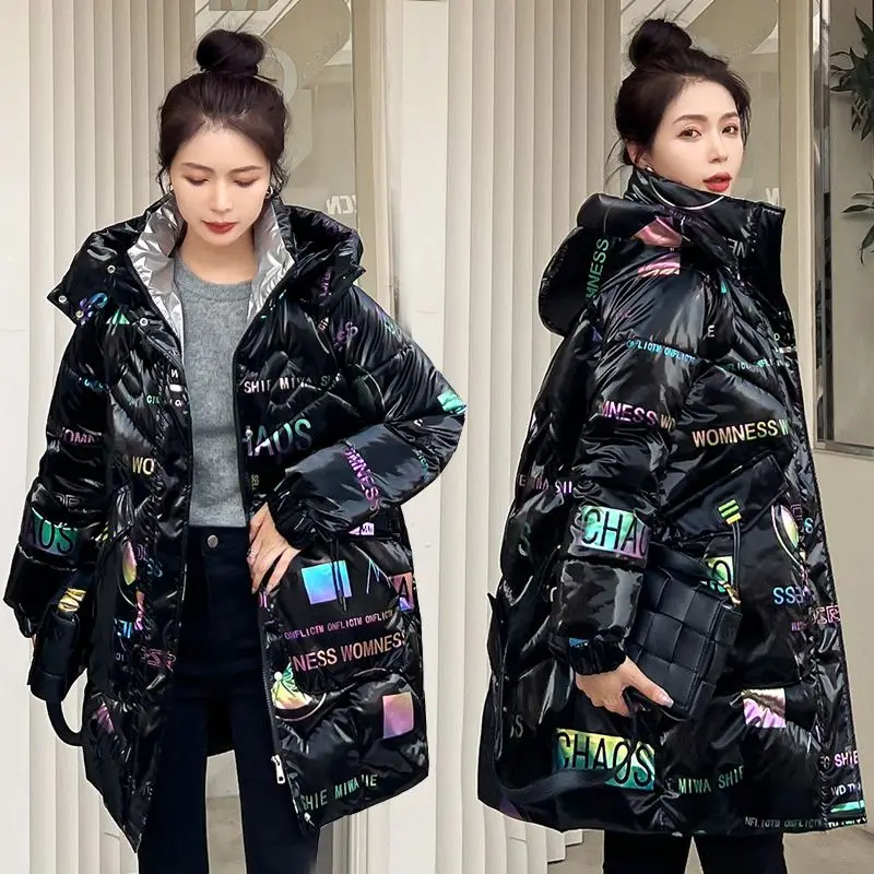 Mid-length, no-wash, Fényes cotton-padded Női Öltözés számára téli, Ingó-, Nehéz felfogású Alsófokú, cotton-padded kabát majd Alvóhely