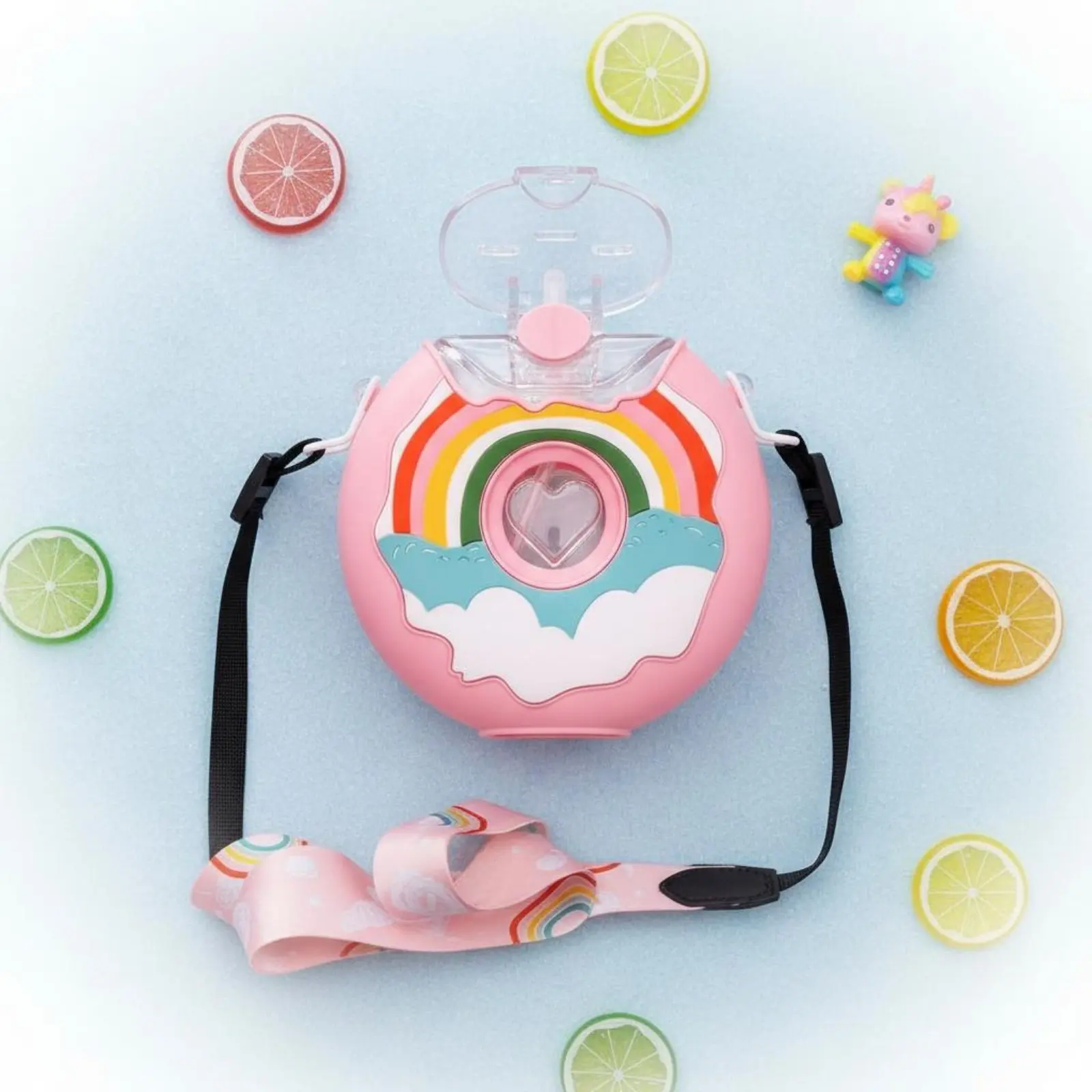 Fánk vize Flaska leak-resistant Fánk alakú kifolyó Flaska gyerekeknek Rizskalász Flaska vel szíj újrafelhasználható Hordozható children's vize