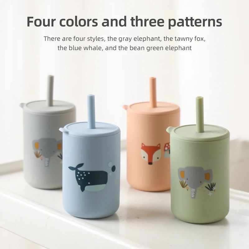 200ml food-grade szilikon Baba Átvágás Gúnyrajz aranyos Árverseny kifolyó sippy Átvágás számára Új learners Árverseny food-safe Edzés Átvágás számára babies