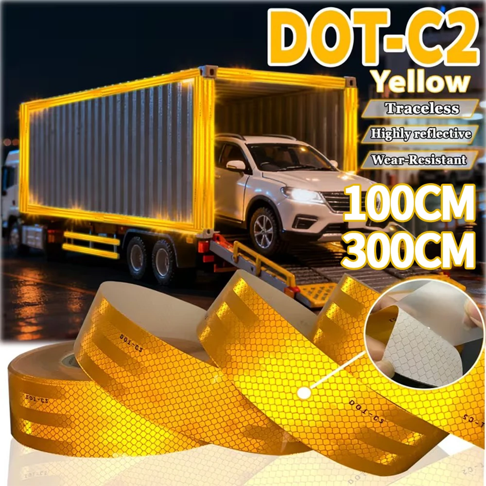 Reflektor matrica 300CM/100CM DOT-C2 Elsárgul fényvisszaverő Biztonság Célszalag conspicuity Vízálló számára vehicles Követő Hajó Cégér