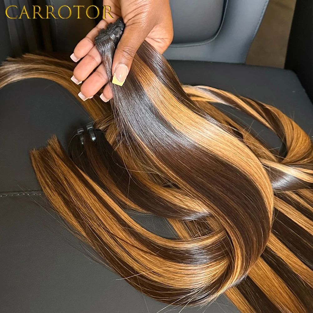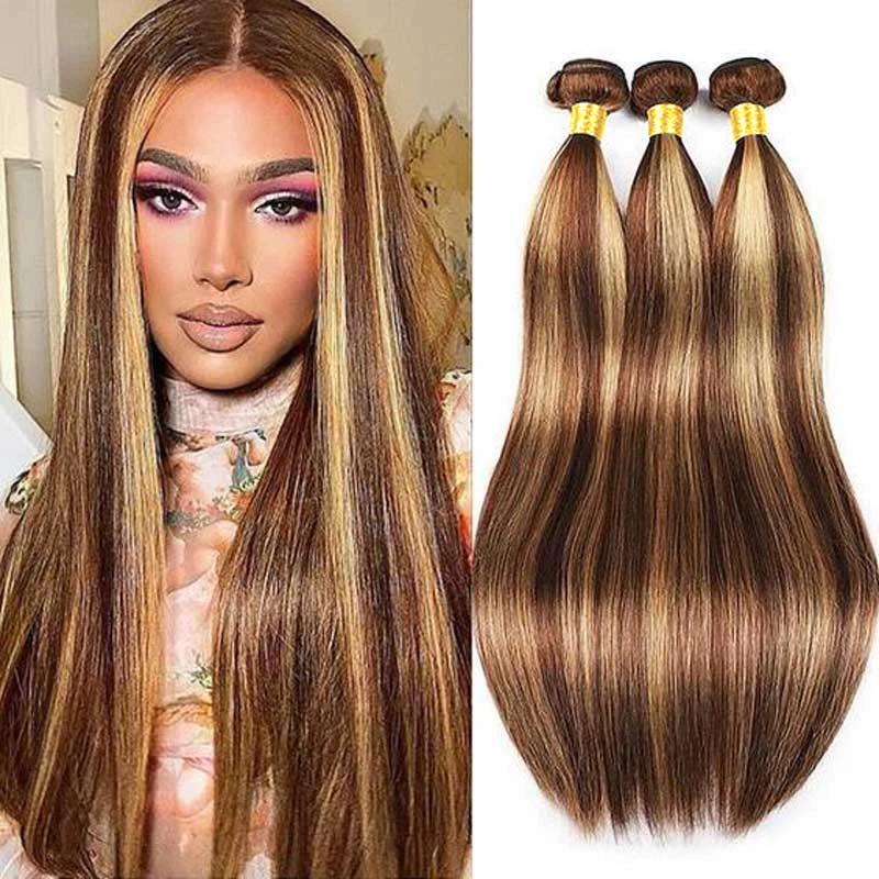 Egyenesen haja 4/27 Homályos Barna majd Szőke színben Emberek haja 100% unprocessed Érintetlen Belesző valós Emberek haja kiterjesztések számára Nők