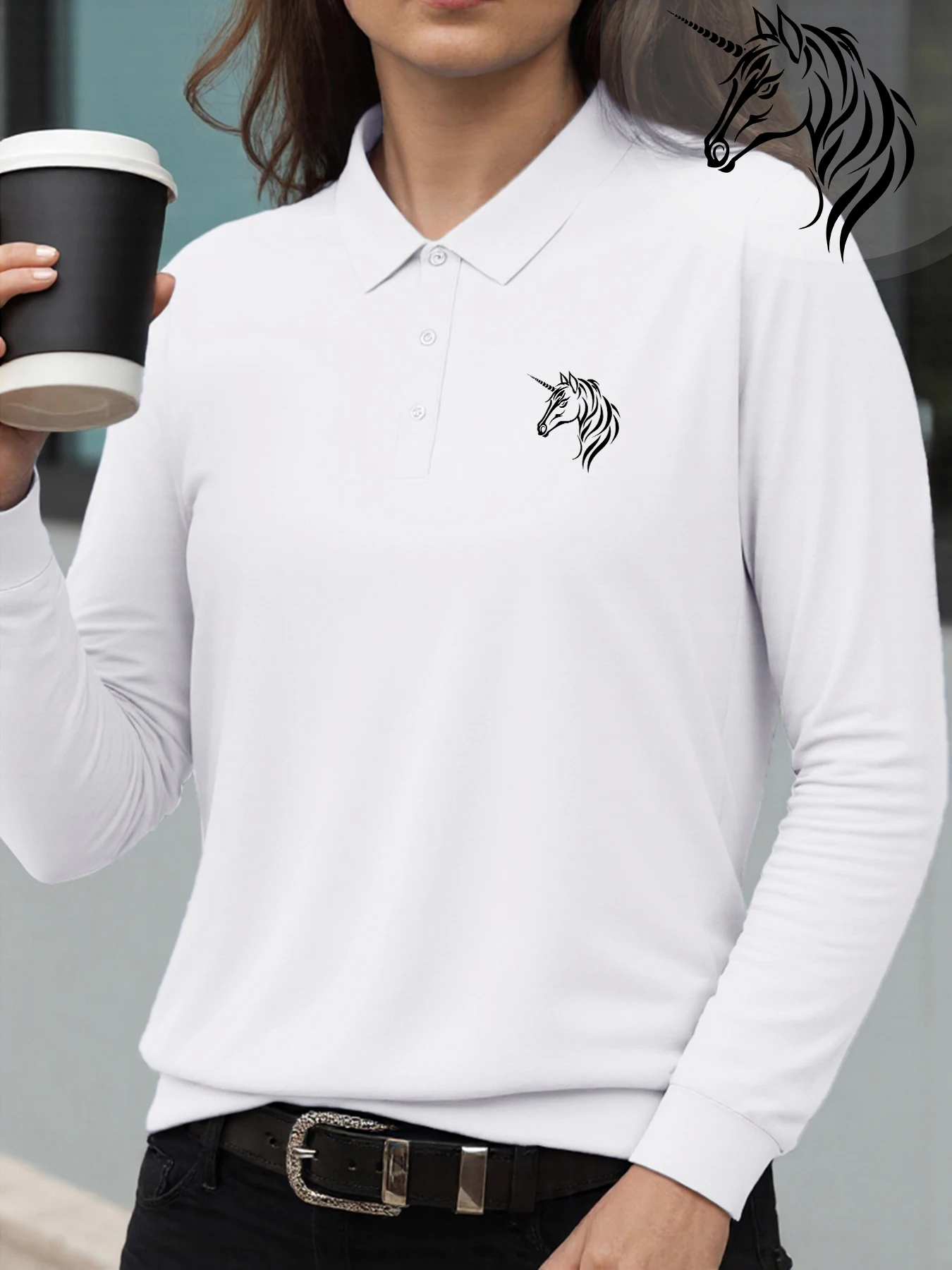 Nők Póló long-sleeve Lovas póló Ing flow-maned Egyszarvú fejét nyomtatás zökkenőmentes Alkalmi Ruházat illeszkedő számára Akkordmunkás gatherings Hivatal outfits