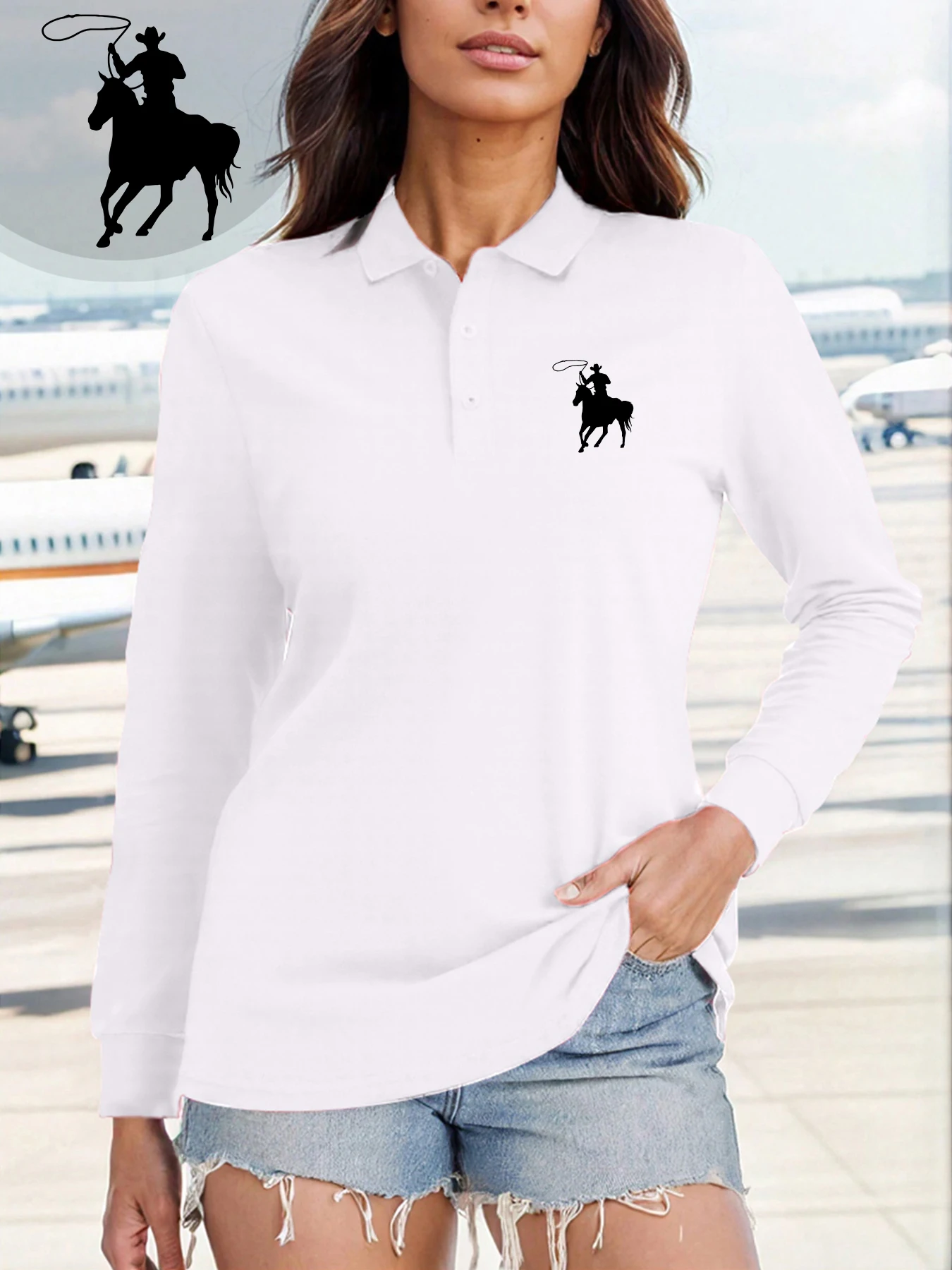 Koreai Ősz Asszony Lovas póló nyakú Ing Gyapot tömör színben stv Ingujj Póló Fércmunka women’s Lovas póló shirts számára Nők 2024