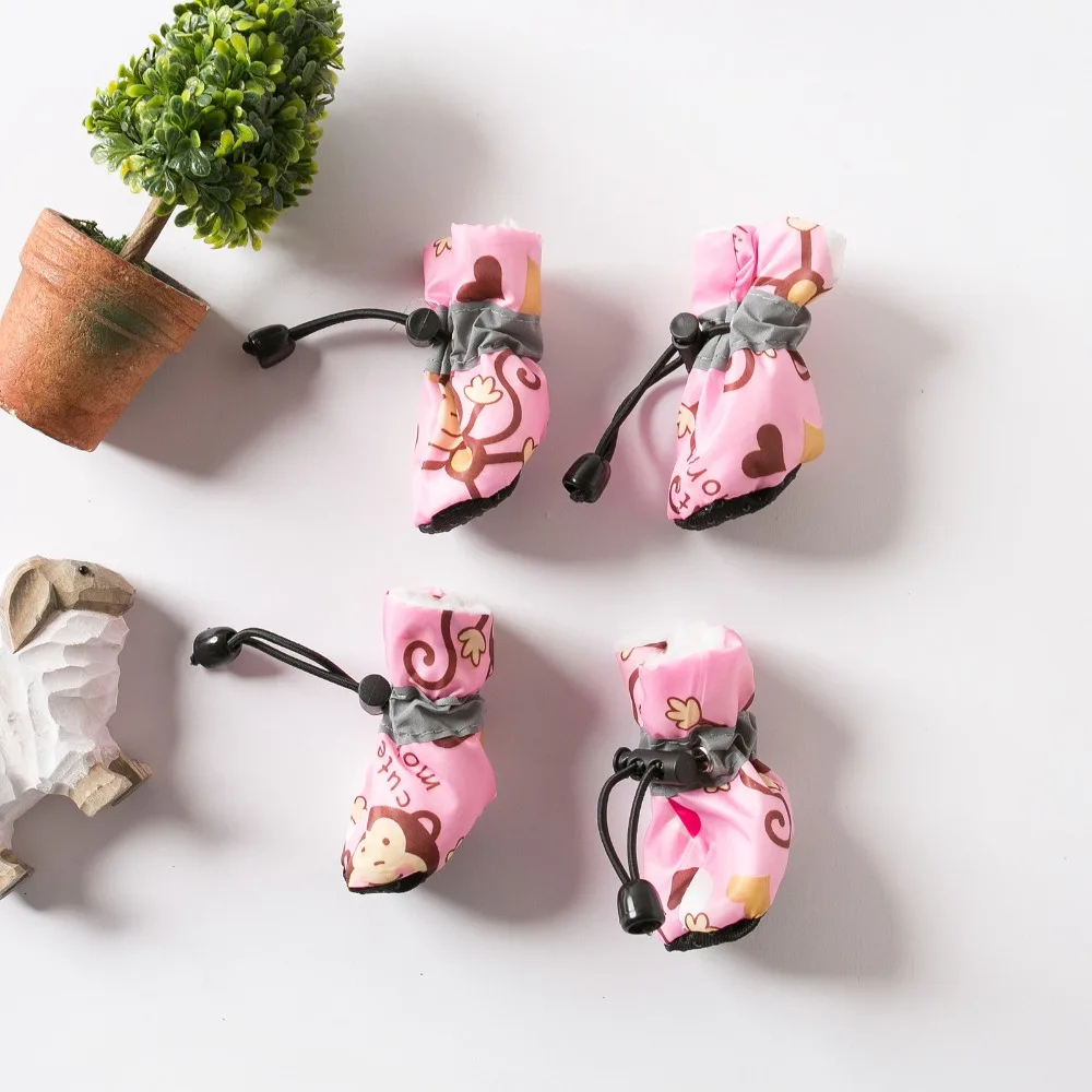 Új 4db Vízálló Dédelget Csín cipők csúszásgátló Esik az eső Havazik Bakancs Nehéz felfogású Együttérző számára kicsi Macskák Kutya Kutyakölyök Zokni Kötött kiscipő