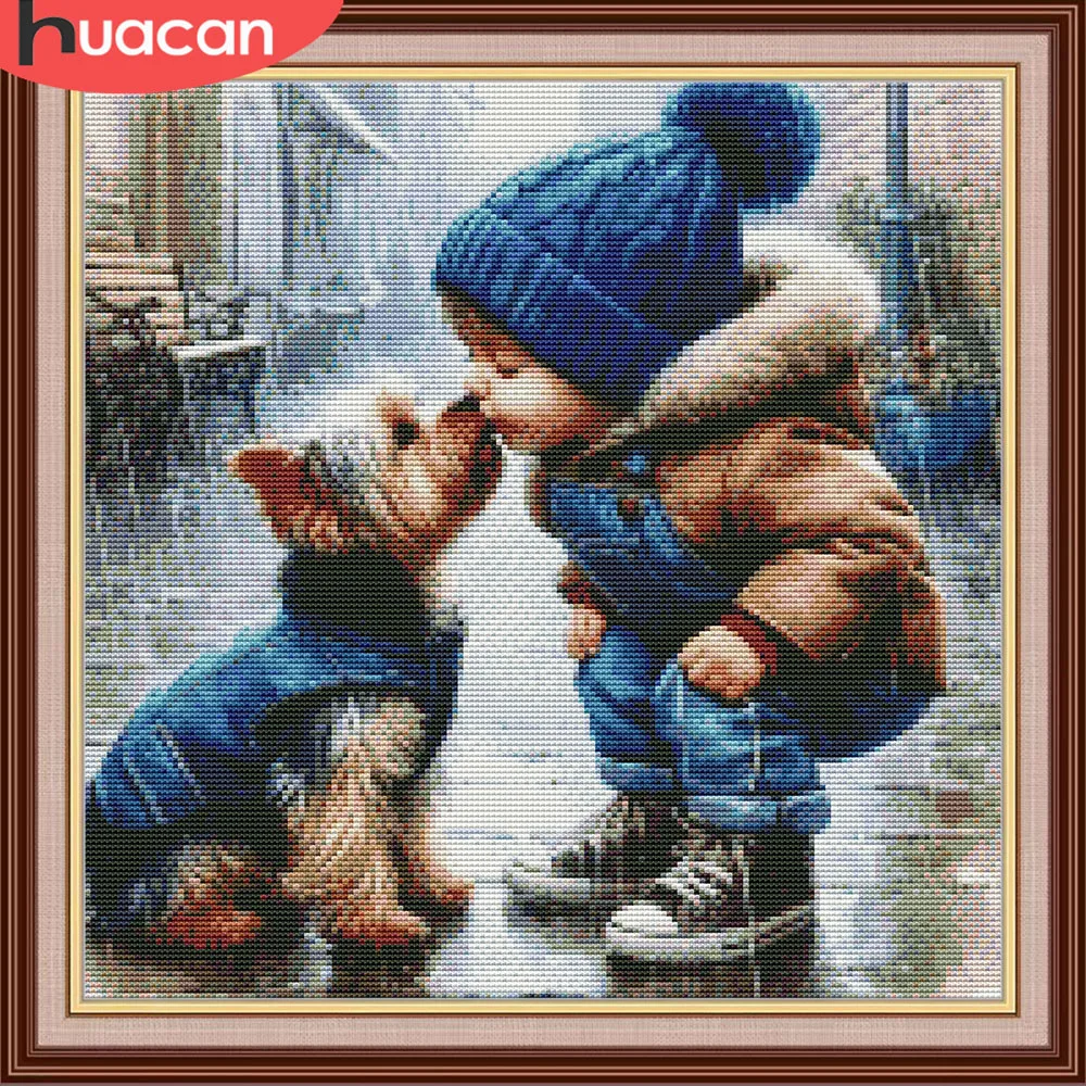 HUACAN Kellemetlenség Hímzés sets Elárusítónő Csín Arckép Kellemetlenség Bevarr Állat Hobbi kézműves 11ct Ábra Imprimé kelme Filmtéma fali dekor