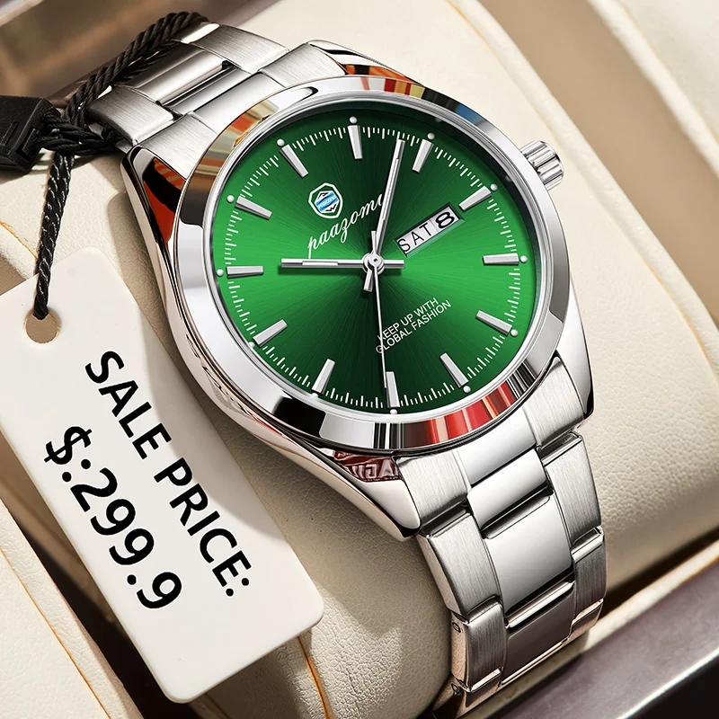 PAAZOMU férfiak watches Elsőrangú multifunctional fltwheel Stopperóra Eredeti Kvarc Karóra Hold Fázis 24 Óra Vízálló reloj