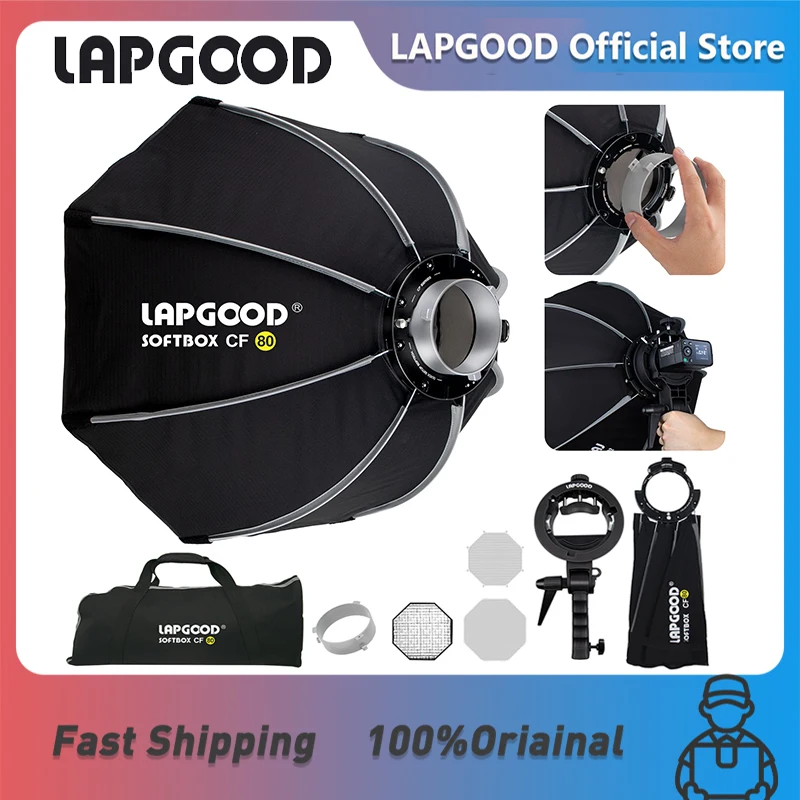 LAPGOOD CF80 softbox Élősövény Árammegszakító 80CM Egyetemes bowens Buggyan Nyolcszögű Lépesméz Alak softbox Előírás összecsukható softbox