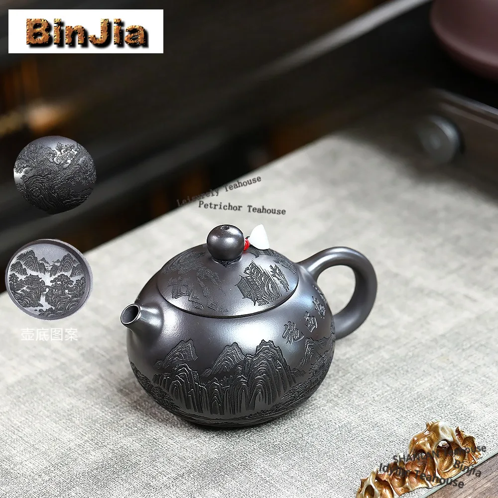 400ml Elsőrangú yixing Bíborszín Agyag Teáskanna handmade xishi Bögre Durván faragott Érc Kő Elsárgul Csatak Tea Sörfőzés Főzőedény vel infuser zisha teaset