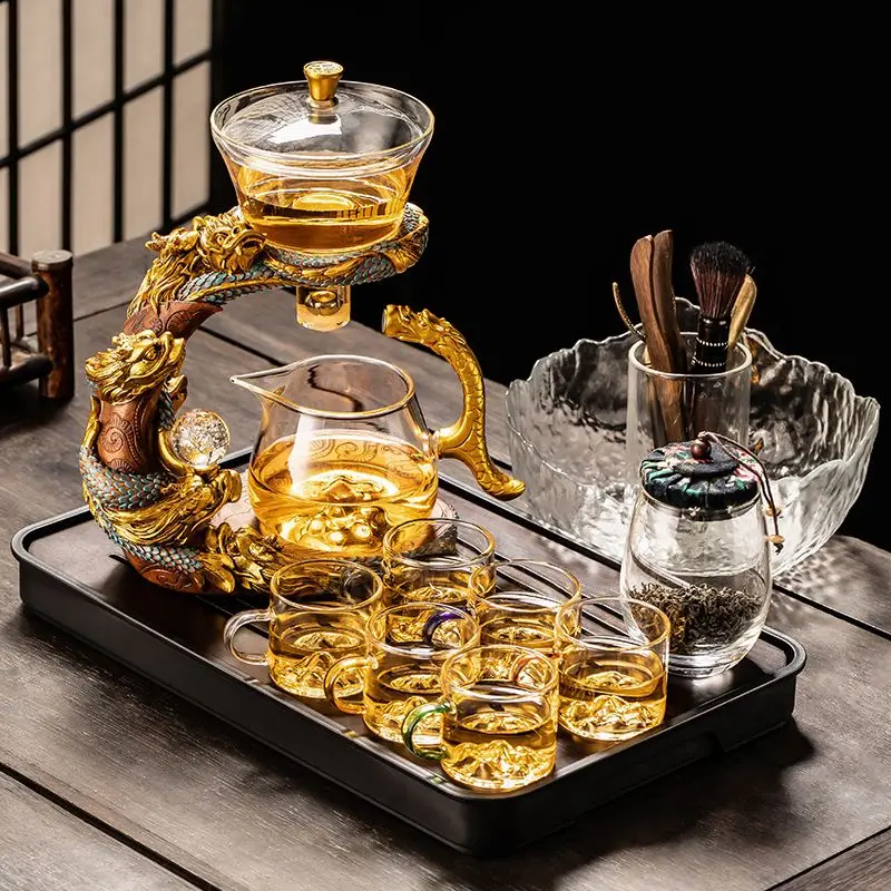 Dologkerűlő üvegek automata Tea beállítása Teendő Adomány Magas borosilicate Dragón kung fu teaware sets