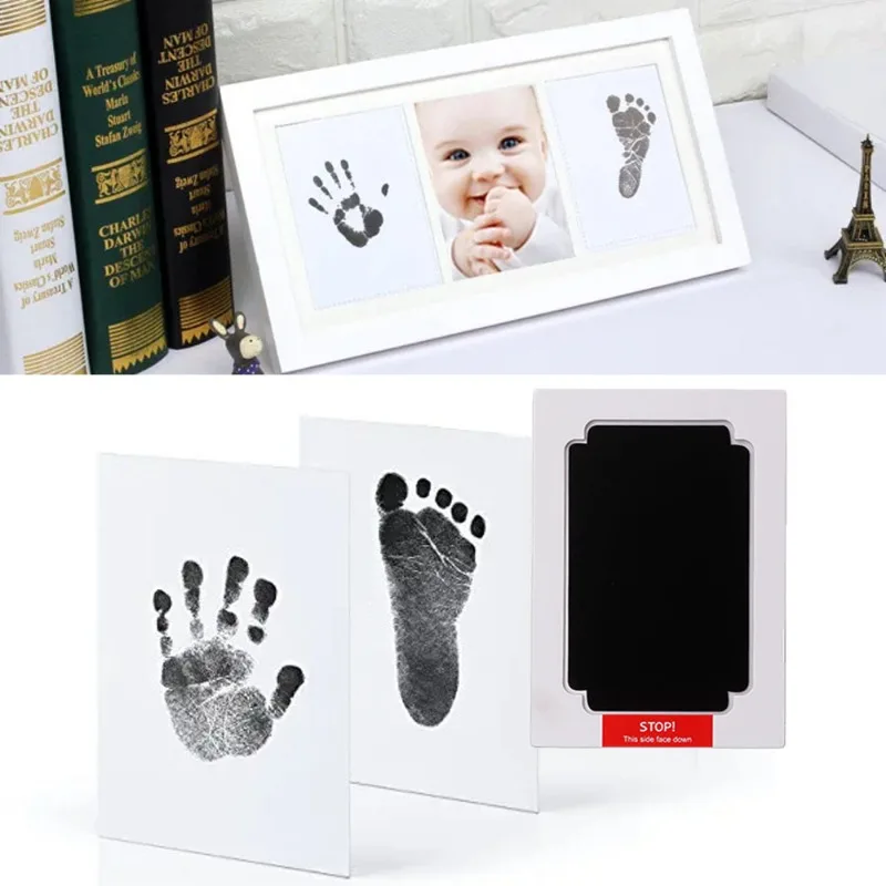 2 beállítása Újszülött Baba DIY kezét majd Futómintázat készlet tint Lábszárvédő foto Képkeret handprint toddlers Ajándéktárgy Biztonságos Akadálymentes Baba zuhany Adomány