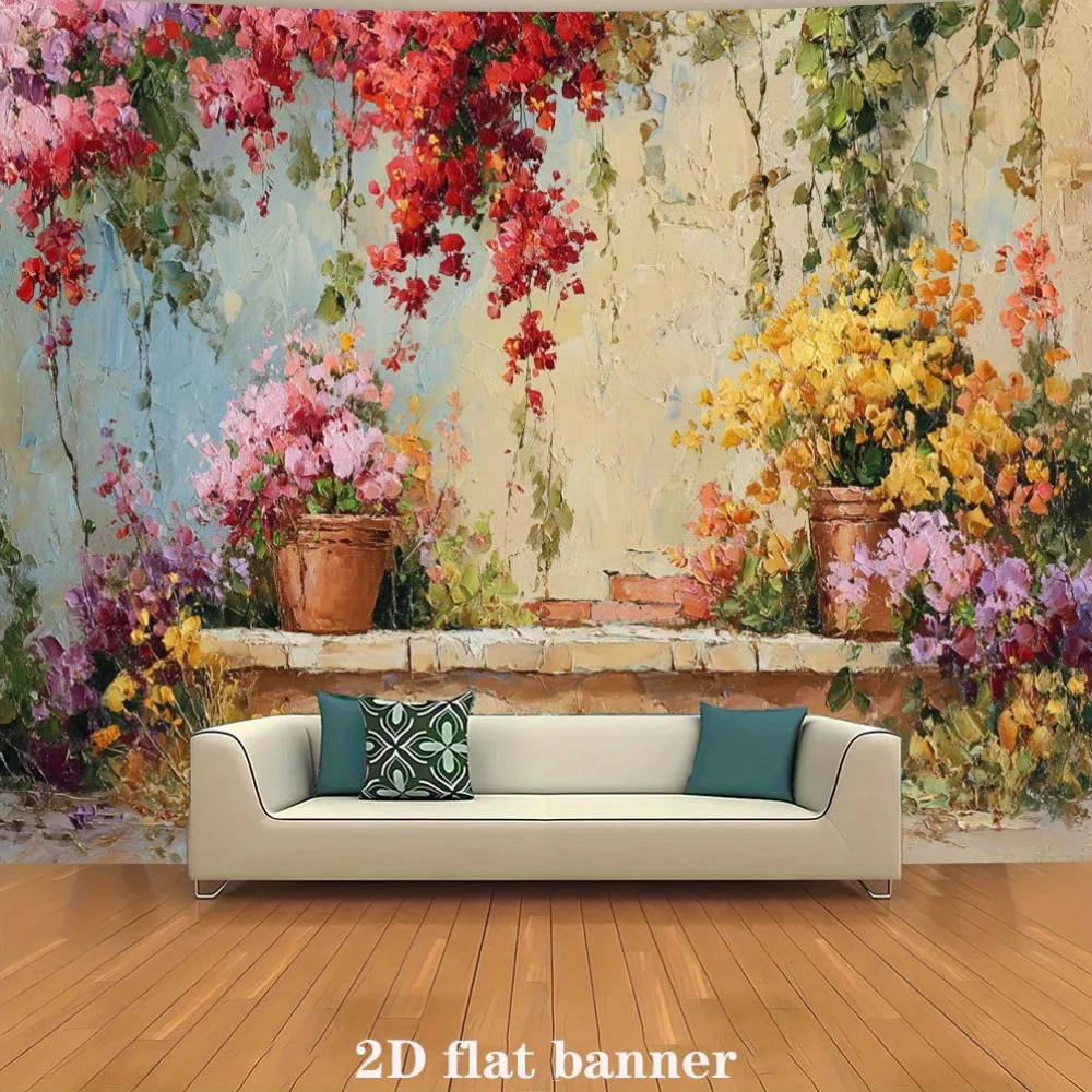 2ds Állott, 1db Földközi-tengeri Virág- Tapéta Lobogó - Választékos Terrakotta Falaz, bougainvillea virágok óra Pink, Elsárgul, Bronzszínű